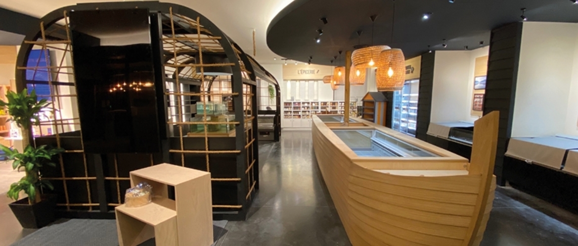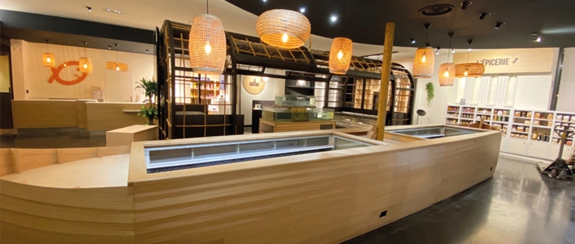 La boutique est aménagé en différents espaces pour accueillir poissons, crustacés, épicerie, traiteur, caviar.