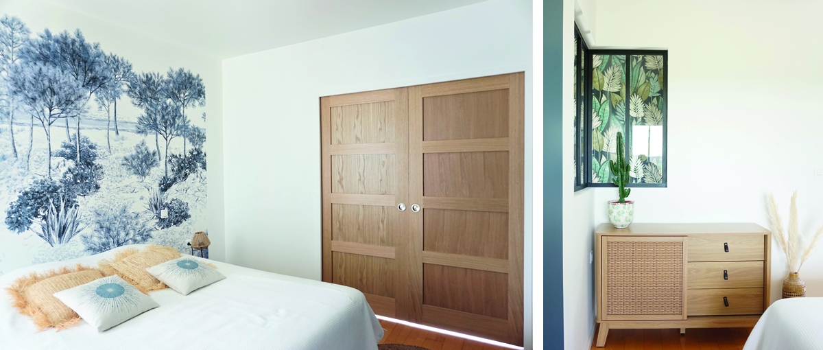 Celle-ci dévoile une ambiance bord de mer parée du papier peint panoramique Dune (Isidore Leroy) et de matières naturelles pour une invitation à l’évasion.