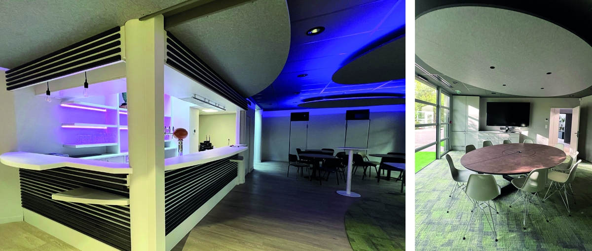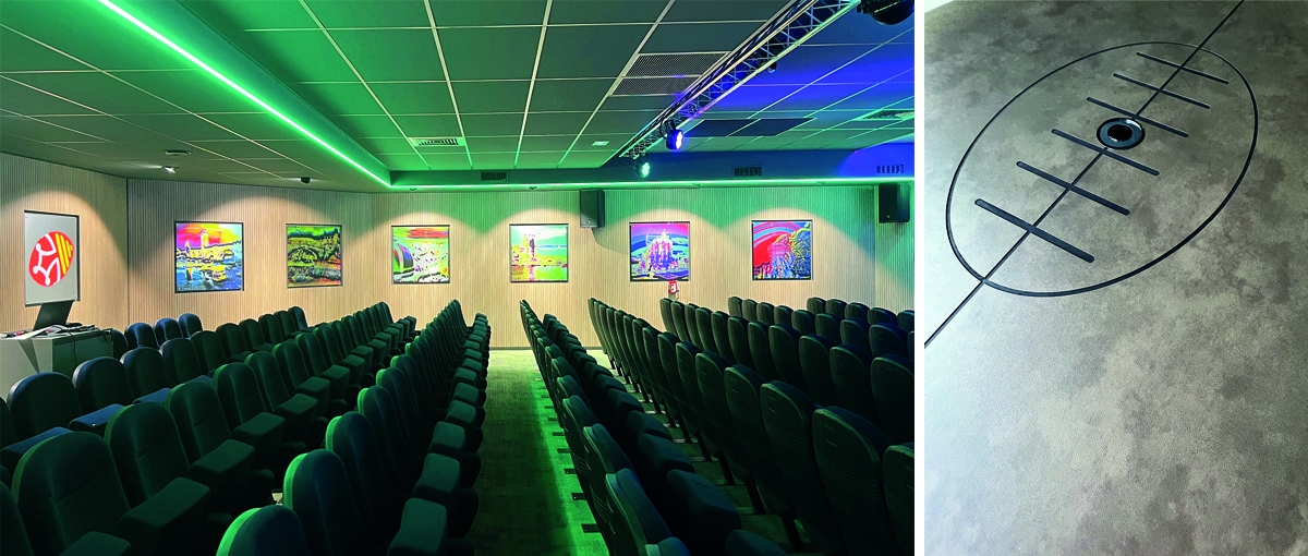 L’acoustique de l’auditorium a été améliorée par la mise en place d’un revêtement boisspécifique. L’espace réceptif a été impacté par le nouvel emplacement du bar et la création d’une salle « VIP » plus intime.