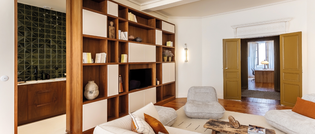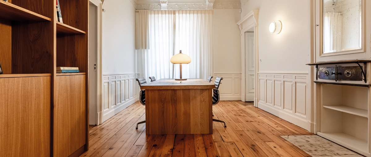 Nous l’avons mis à nu du sol au plafond, démoli et repensé cuisine et salles de bains, fermé certains passages et ouvert d’autres, restauré le plafond à caissons d’origine.