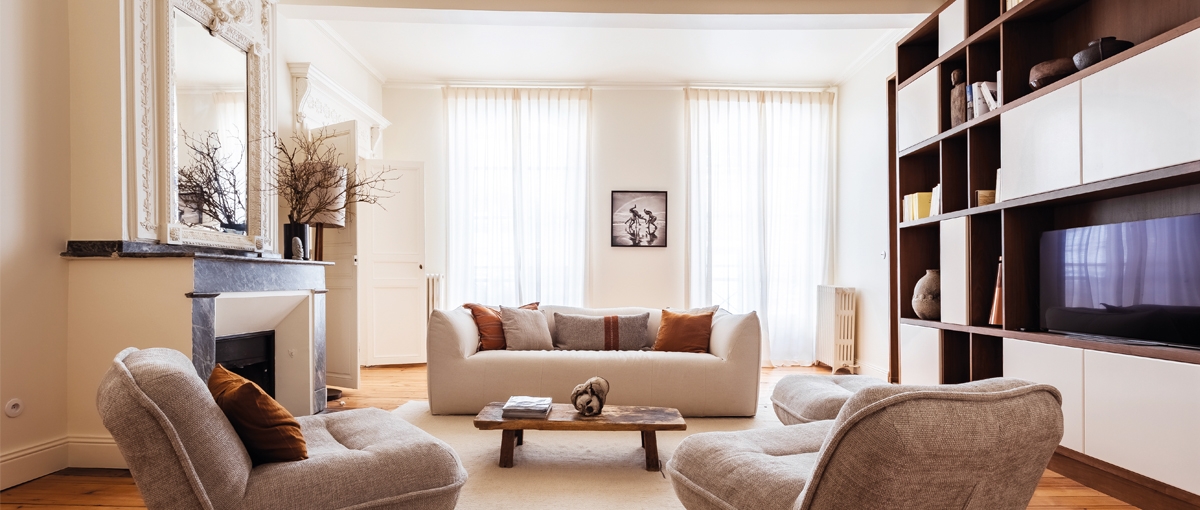 Je souhaitais un cocon chic et chaleureux, avec un choix de matériaux haut de gamme et des finitions parfaites, mes clients en ont fait leur pied-à-terre citadin personnel et professionnel et ont naturellement apporté leur touche finale par leur choix pointu d’objets et d’accessoires.