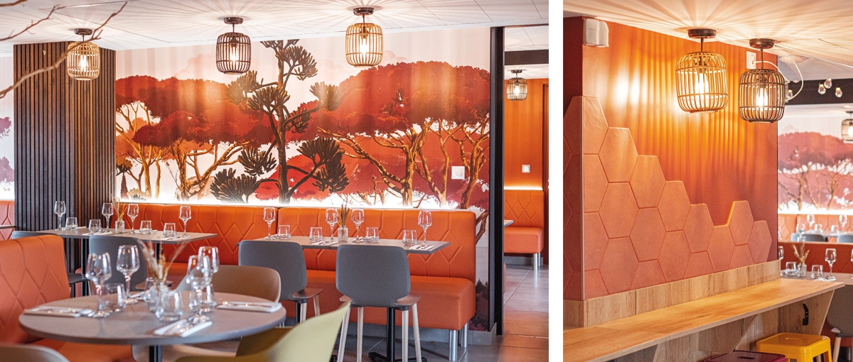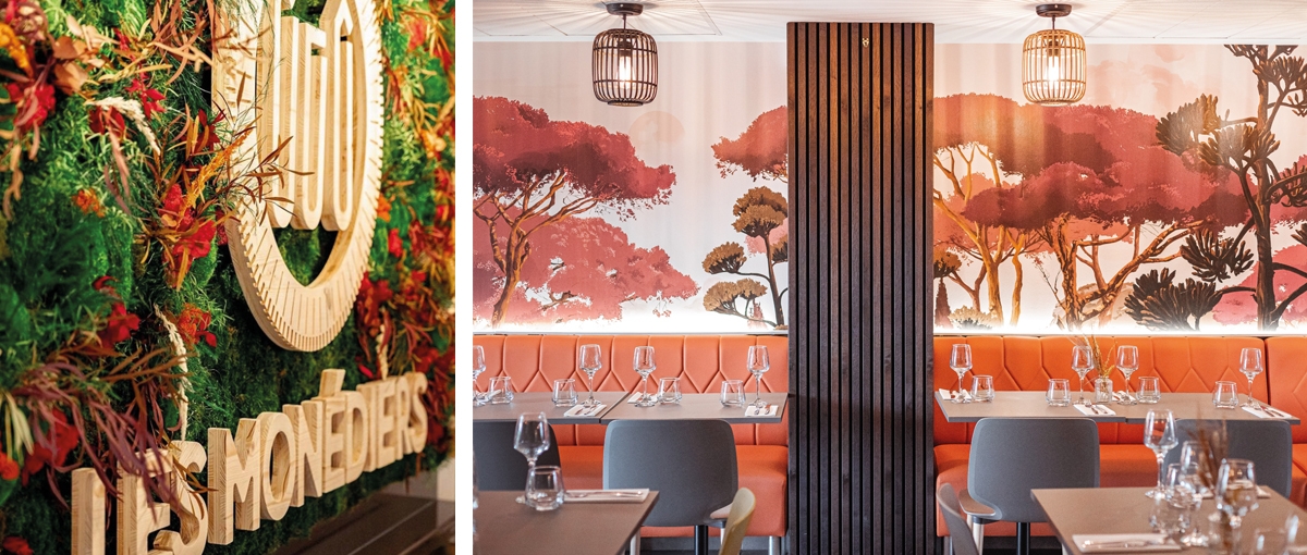 C’est alors que l’équipe du restaurant les « Monédiers » m’a consulté pour transformer le décor de ce self de centre de long séjour en un cadre accueillant où sera proposé le midi une carte de saison, originale et fine.