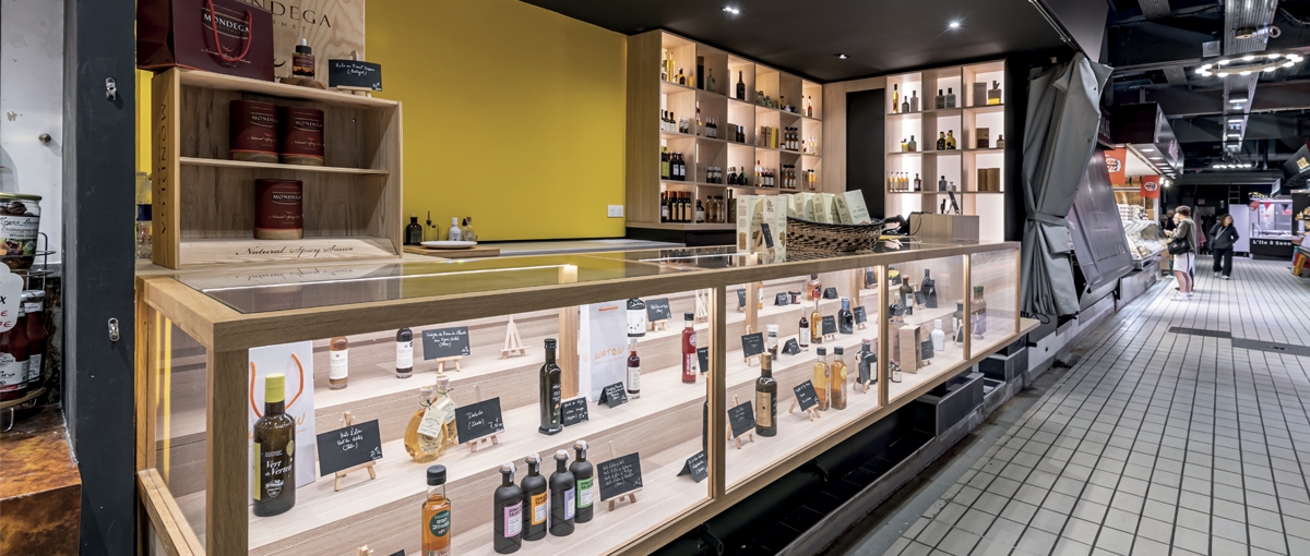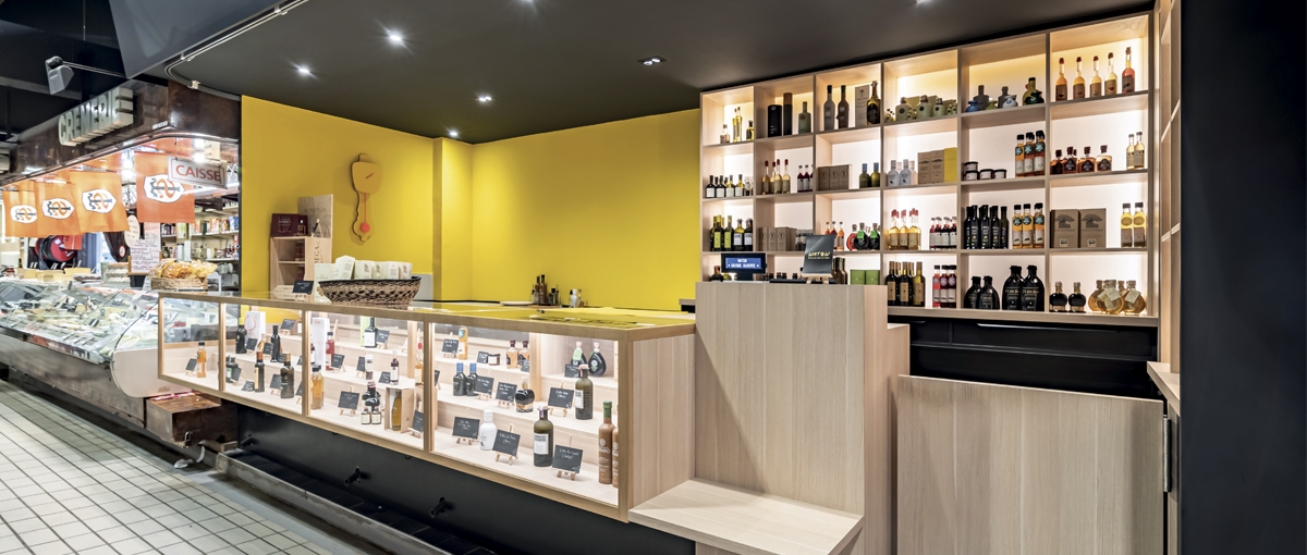 D'une boucherie aux huiles fines du monde… Purge et rénovation totale technique et esthétique de cette loge avec mise aux normes, agencements sur mesure, ergonomie et optimisation de 14 m2 de surface de ventes.