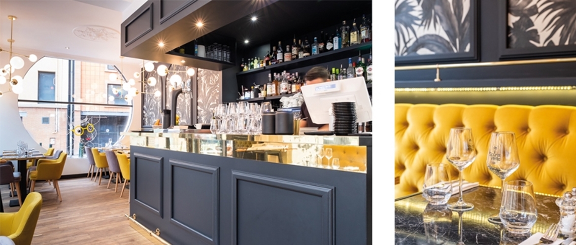 Pour ce projet, les clients souhaitaient un esprit " Brasserie parisienne" avec un code couleur marqué.