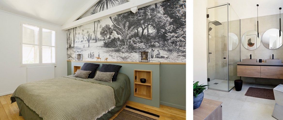 Pour répondre aux besoins de la famille, l’étage a bénéficié d’une salle de bain supplémentaire grâce à la redistribution d’un couloir, un peu raccourci, et d’une chambre.